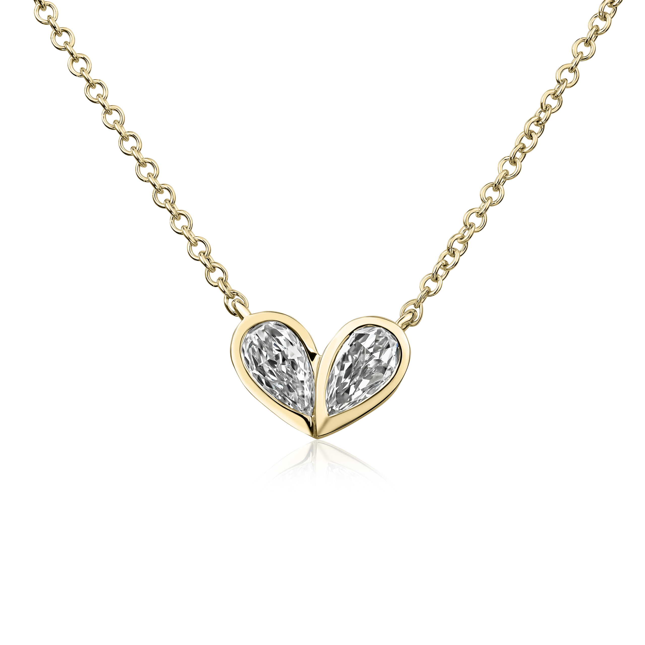 Christopher Designs heart-shape pendant featuring L’Amour Crisscut® Pear Shape diamonds 0.55cttw, set in 14K yellow gold.